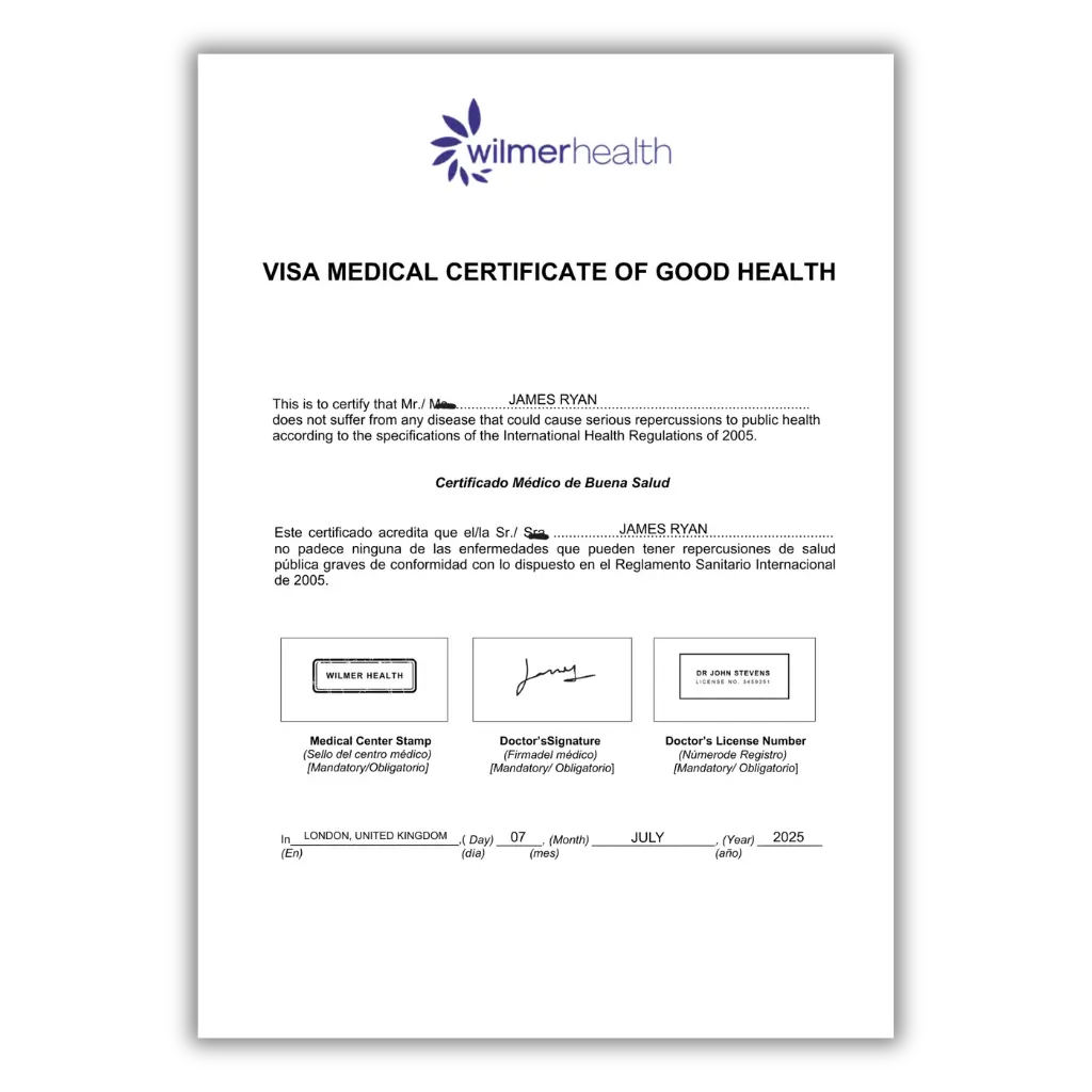 Wilmer Health prepares country-specific visa medical certificates tailored to the requirements of the destination country.